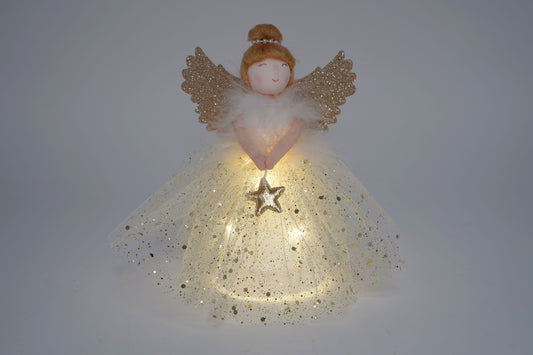 Gold Blonde Light Up Angel Christmas Tree Topper + Includes Batteries | Size: 18cm