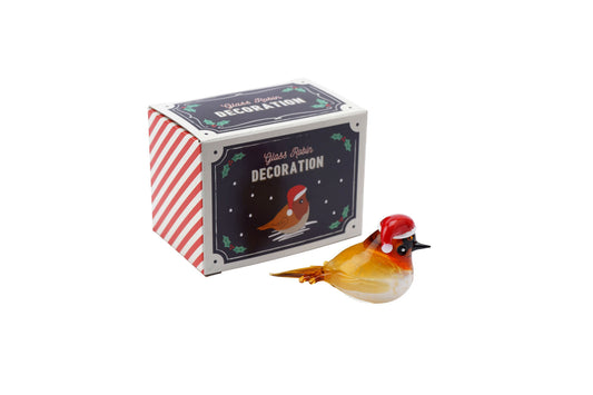 Glass Festive Santa Hat Robin Figurine In Gift Box • Decoration • Ornament • Collectable • Gift For Home • Home Decor • Christmas