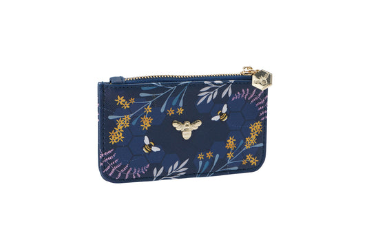 Navy Bee Card Holder Wallet Purse • Floral Print • Ladies Accessory • Handbag Money Wallet • Gift For Her