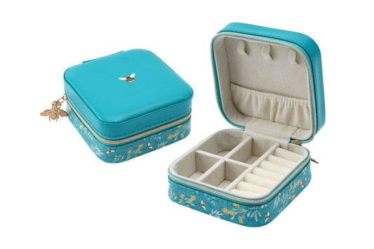 Teal Bee and Floral Garden Design | Travel Jewellery Box Case | Ladies Accessory | Organiser | Gift For Her | Rings | Earrings | Necklaces