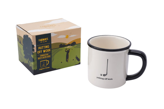 Golf Ceramic Mug • Fairways Golfing Goods ‘Putting Off Work’ • Men's • Gift Box • Mug Tea Coffee • Kitchen Home Accessory • Gift For Him