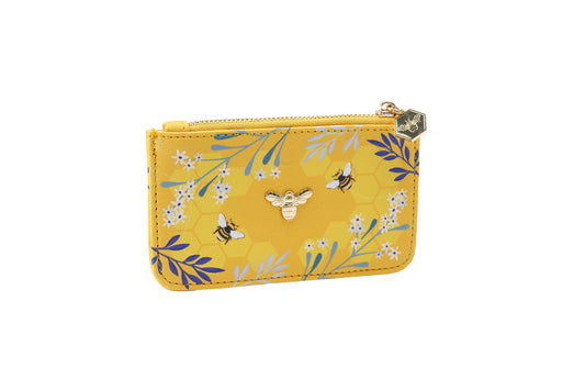 Yellow Bee Card Holder Wallet Purse • Floral Print • Ladies Accessory • Handbag Money Wallet • Gift For Her