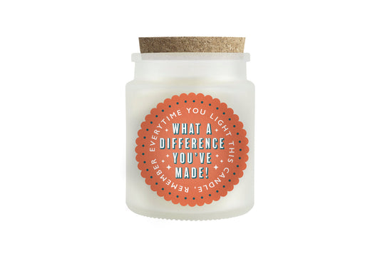What A Difference You've Made • Scented White Glass Jar Candle • Best Teacher • Coach Gift Thank you Gift • Gift Box