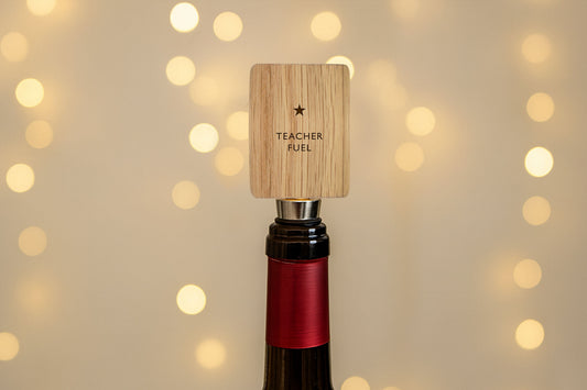 Best Teacher Rectangular Oak Wine Bottle Stopper | 'Teacher Fuel' | Funny | Drink Accessory