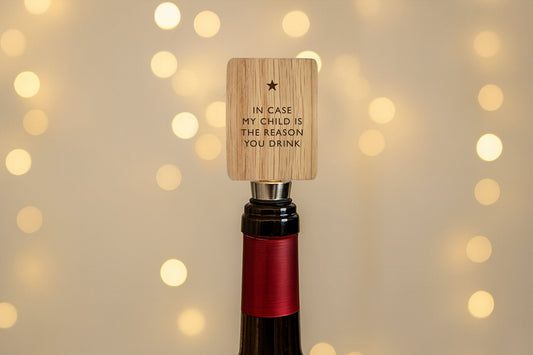 Best Teacher Rectangular Oak Wine Bottle Stopper | 'In Case My Child Is The Reason You Drink' | Funny | Drink Accessory