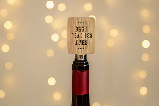 Best Teacher Rectangular Oak Wine Bottle Stopper | 'Best Teacher Ever' | Funny | Drink Accessory
