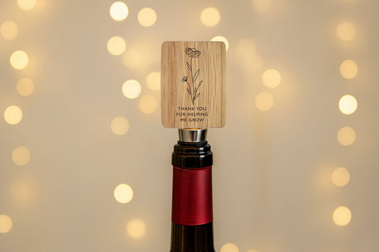 Best Teacher Rectangular Oak Wine Bottle Stopper | 'Thank You For Helping Me Grow' | Funny | Drink Accessory