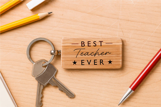 Oak Rectangle Keyring 'Best Teacher Ever' | Perfect Gift | House Keys | Novelty | Teaher Leaving Gift