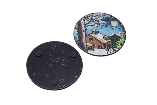 Christmas Cabin Set of 4 Glass Coasters In Gift Box