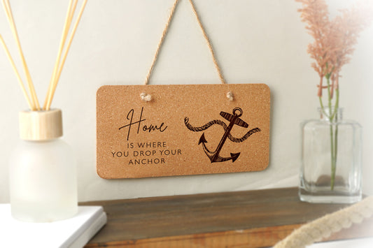 Cork Hanging Sign - 'Home Is Where You Drop Your Anchor' | Wall Sign | Rustic | Home Decor | Nautical