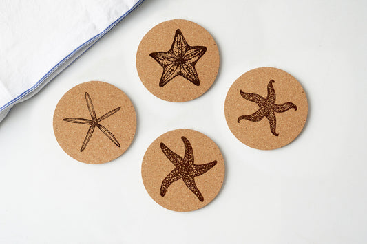 Set of 4 'Starfish' Assorted Round Cork Coasters | Homeware | Tableware