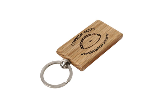 Cornish Gifts 'Cornish Pasty Appreciation Society' Rectangular Oak Keyring | Perfect Gift | House Keys | Novelty