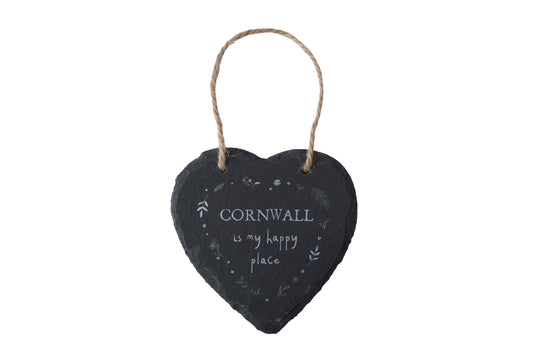 Cornwall Is My Happy Place - Cornish Gift - Novelty Slate Hanging Heart Decoration