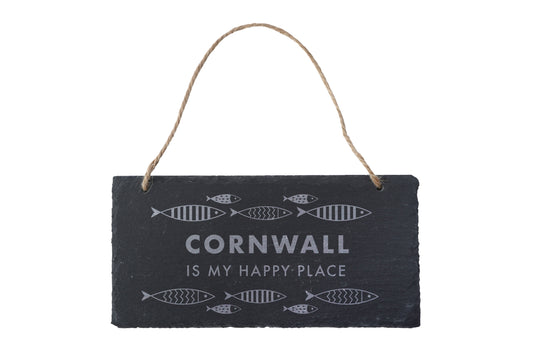 Cornwall Is My Happy Place - Illustrated Fish Slate Sign
