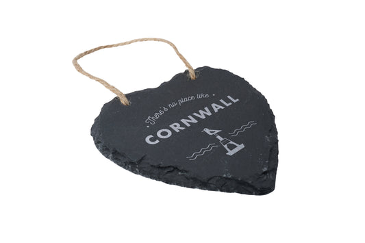 There's No Place Like Cornwall - Cornish Gift - Novelty Slate Hanging Heart Decoration