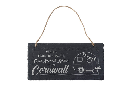 We're Terribly Posh, Our Second Home Is In Cornwall - Illustrated Slate Sign