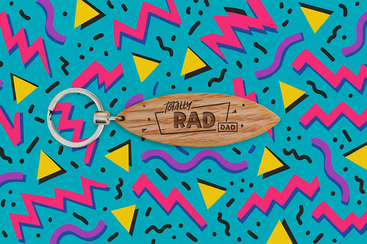 Oak Surfboard Keyring 'Totally Rad Dad'| Birthday | Special Birthday | Father's Day | Keepsake