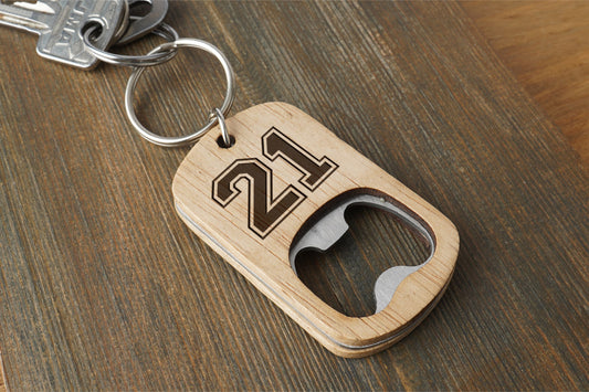 Oak Bottle Opener Keyring '21' | 21st Birthday | Special Birthday | Keepsake
