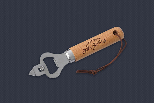 Wooden Bottle Opener 'Let's Get Piste' | Perfect Gift | Novelty | Barware | Skiing | Accessory