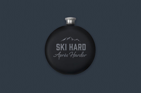 Black 6oz Hip Flask In Gift Box 'Ski Hard, Après Harder' | Drink Holder | Flask | Sport Accessory | Skiing