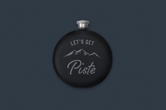 Black 6oz Hip Flask In Gift Box 'Let's Get Piste' | Drink Holder | Flask | Sport Accessory | Skiing