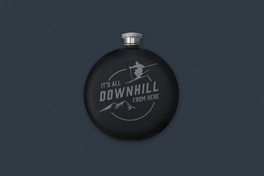 Black 6oz Hip Flask In Gift Box 'It's All Downhill From Here' | Drink Holder | Flask | Sport Accessory | Skiing
