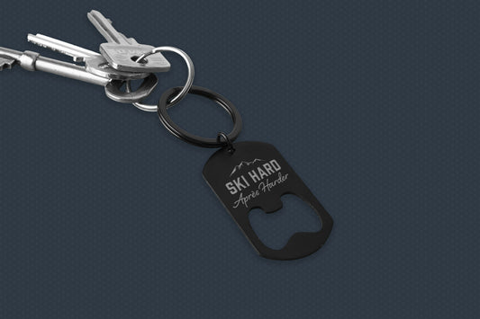 Black Bottle Opener Keyring 'Ski Hard, Apres Harder' | Key Accessory | Gift For Dad | Fathers Day | Skiing