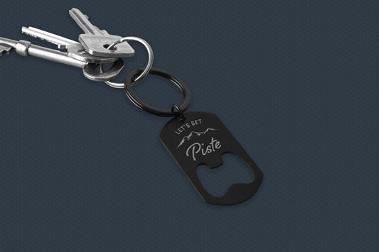 Black Bottle Opener Keyring 'Let's Get Piste' | Key Accessory | Gift For Dad | Fathers Day | Skiing