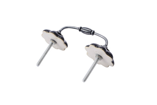 Set of 2 | Beige and Black Flower Design Shaped Ceramic Drawer Pull | Cabinet Pull | Drawer Knob