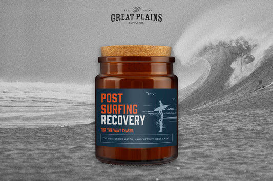 Brown Jar Candle • "Post Surfing Recovery” • Scented Candle • Home Decor • Surfer • Waves • Coast • Gift For Her • Gift For Him • Gift Box