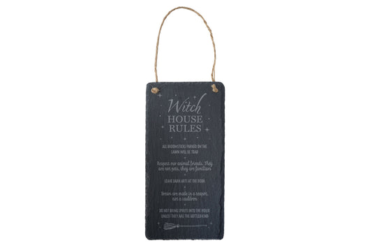 Enchanted Emporium 'Witch House Rules' Long Hanging Slate Sign
