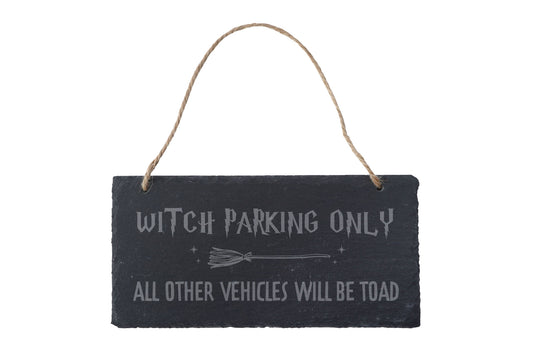 Enchanted Emporium 'Witch Parking Only, All Other Vehicles Will Be Toad' - Illustrated Slate Sign