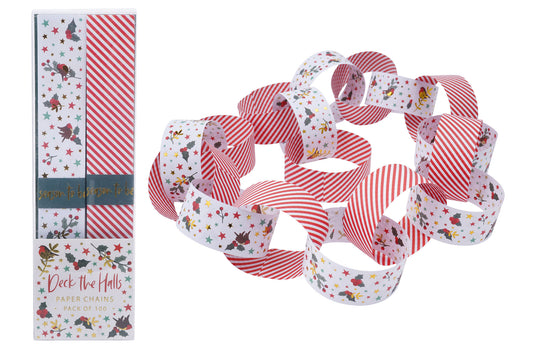 Pack of 100 Deck the Halls Robin Christmas Paper Chains