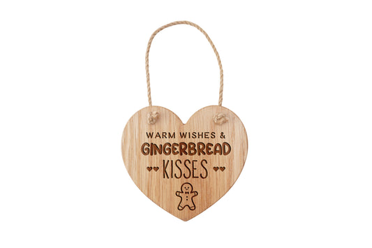 Christmas Oak Heart Hanger - 'Gingerbread Kisses' | Christmas Hanger | FEstive | Home Decor | Homeware