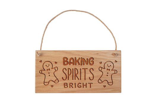 Christmas Oak Hanging Sign 'Baking Spirits Bright' | Festive Sign | Home Decor | Homeware