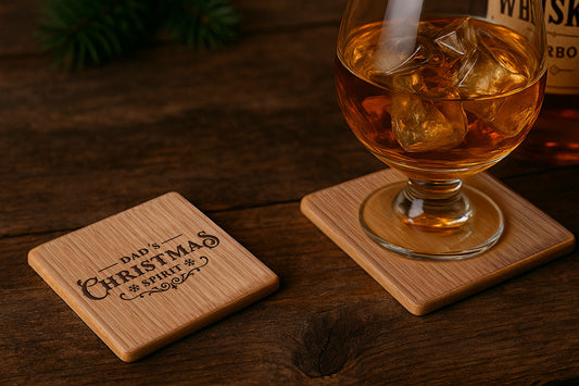 Dad's Christmas Spirt Oak Coaster | Christmas Table Decor | Festive Drink Coaster | Seasonal | Gift For Him