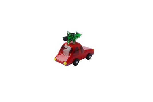 Artisan Glass Red Car With Tree In Gift Box | Ornament | Glass Figurine | Christmas Decoration | Festive Decoration