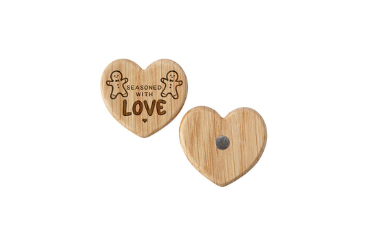 Christmas Oak Heart Magnet 'Seasoned With Love' | Home Decor | Kitchen Decor | Engraved