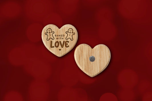 Christmas Oak Heart Magnet 'Baked With Love' | Home Decor | Kitchen Decor | Engraved