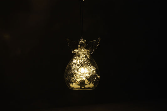 Battery Light Up Christmas Angel Glass Ornament | Silver | Glass Hanging Decoration | 1 Selected At Random