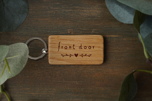 Send With Love 'Front Door' Oak Rectangle Keyring