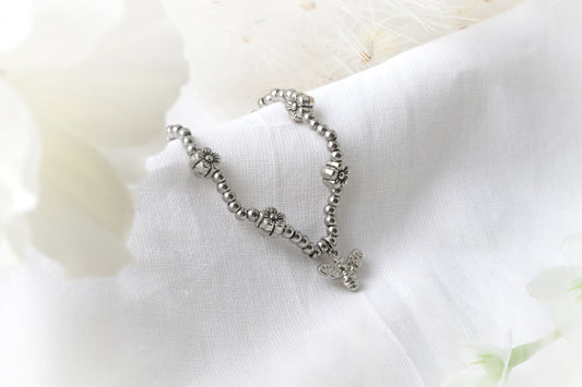 Beaded Silver Bee And Flower Bracelet With Gift Card