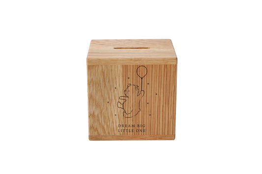 The Little Bear Co. 'Dream Big, Little One' Oak Money Box | Wooden Money Box | Saving | Piggy Bank