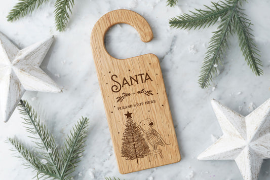 Little Bear Co. - 'Mouse - Santa Please Stop Here' Oak Door Hanger | Perfect Gift | Mother's Day | Novelty