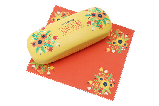 Live Happy Yellow Sunflower Hard Glasses Case With Microfibre Cleaning Cloth • Gift For Her • Snap Closure • Eye Care • Travel Accessories