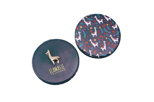 Live Happy 'Llamaste' Llama Compact Mirror • Perfect Gift • Gift Boxed • Travel Friendly • Handbag Accessory • Ladies Gift • Vacation