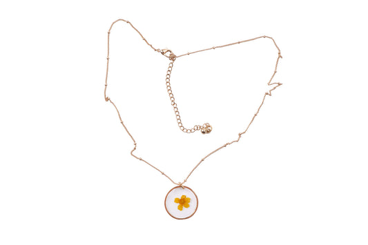 Yellow Pressed Flower Pendant Necklace | Hello Sunshine | Gold Colour | Jewellery | Chain Length 41cm or 46cm | Fashion Accessory