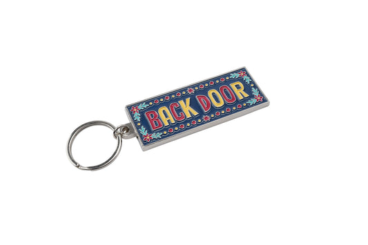 Live Happy 'Back Door' Enamel Keyring | Blue | Bag Charm | Keychain | Gift For All