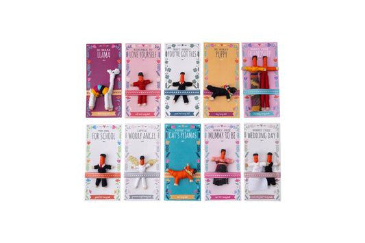 Set of 10 Fabric Worry Dolls on Gift Card | Motivational Charms | Gift For All