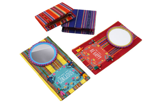Folding Fabric Worry Doll Compact Mirror with Motivational Slogan | 4 Colours - 1 Picked At Random | Gift For Her